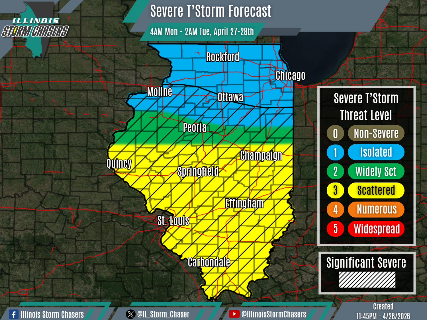•Monday Morning – Early Tuesday Morning, April 27-28th: All of Illinois.