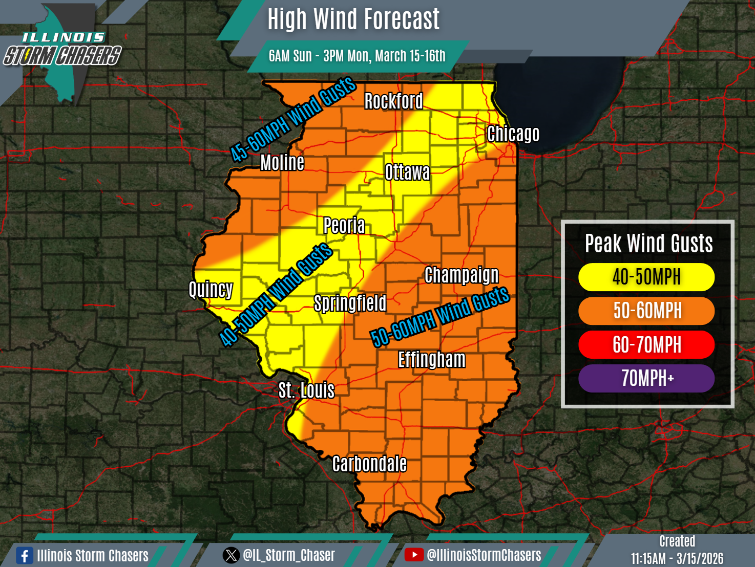(11:15AM – Sunday, March 15th, 2026) High winds expected across the state thru Monday afternoon…
