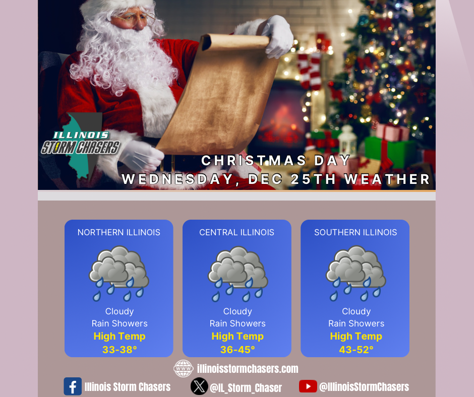 •Rain showers are likely across Southern Illinois on Christmas Eve and a large portion of the state on Christmas Day.